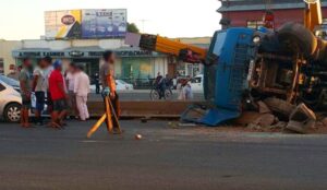 В Ташкенте автомобильный кран после столкновения c авто упал на другие машины