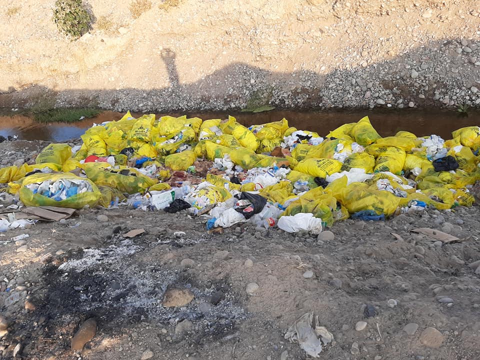 Работники больницы сбросили гору мусора из медмасок и защитных костюмов в реку Чирчик