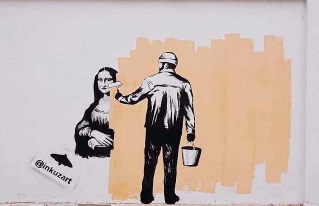 Позже художник представил еще одну работу, которую он посвятил усилиям городских властей по уничтожению уличного искусства, изобразив в граффити уничтожение его известного рисунка «Мона Лиза». Ее закрасили, так как привлекала слишком много внимания. Inkuzart изобразил «Джоконду» в маске, тем самым, решив отдать дань памяти всем жертвам пандемии коронавируса.