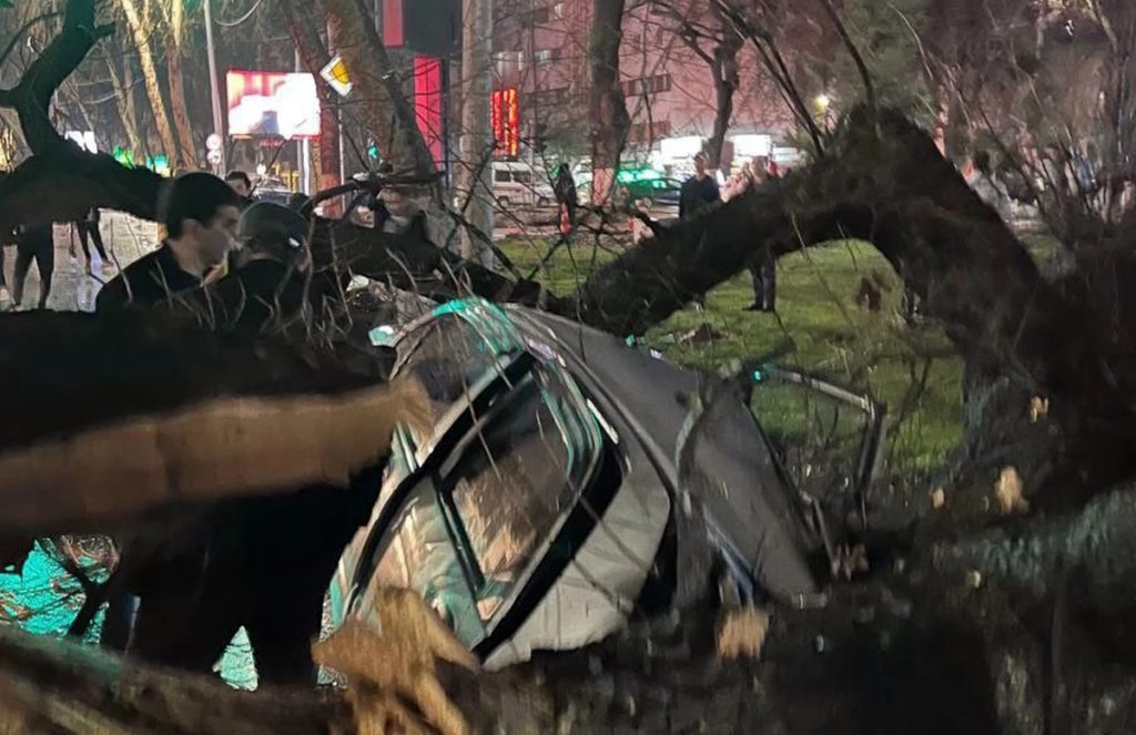 В Ташкенте упавшее из-за грозы дерево повредило сразу три легковых автомобиля, сообщает пресс-служба МЧС.