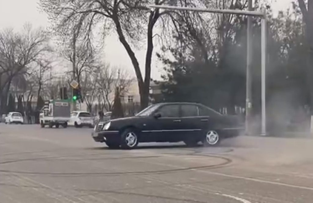 В Ташкенте Mercedes опасно «дрифтовал» на проезжей части