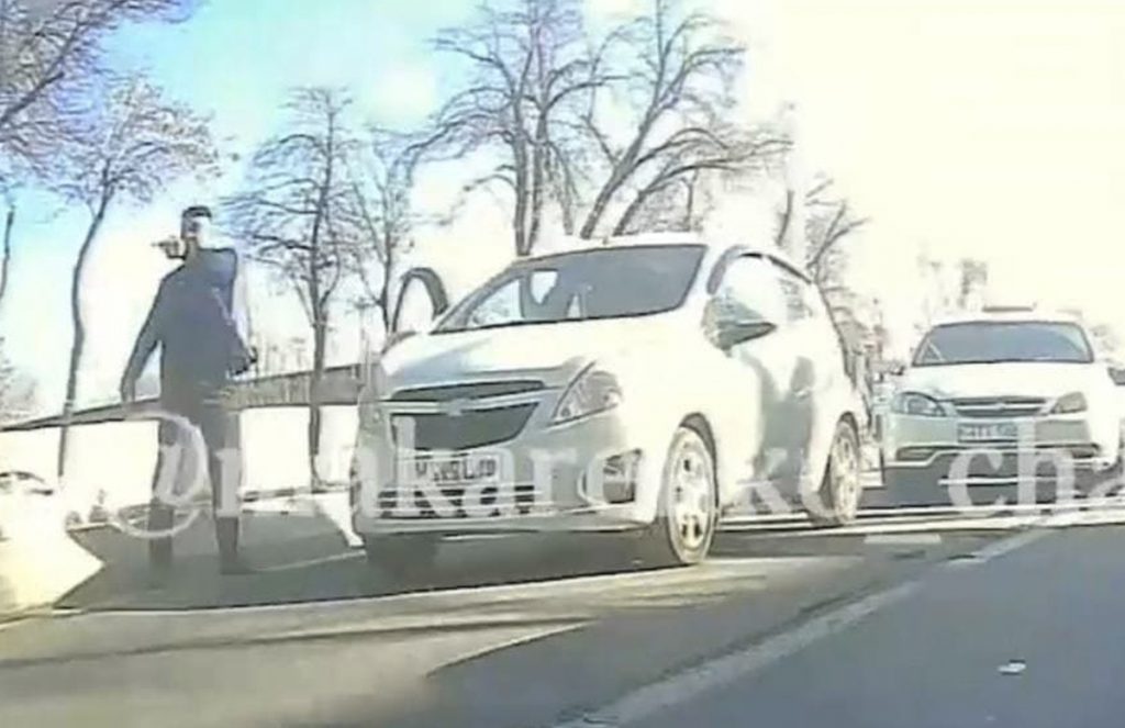 В Ташкенте водитель Spark посреди дороги обстрелял «Ладу» — видео