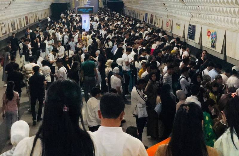 По данным Telegram-канала, в ташкентском метро участились случаи задержки поездов и пробок из-за большого количества пассажиров.