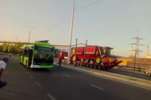 В Ташкенте тяжеловоз врезался в газопровод среднего давления — видео