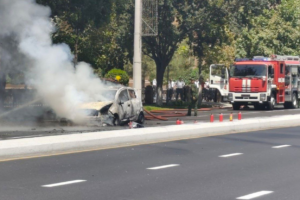 В Ташкенте посреди дороги полностью сгорел Spark — видео