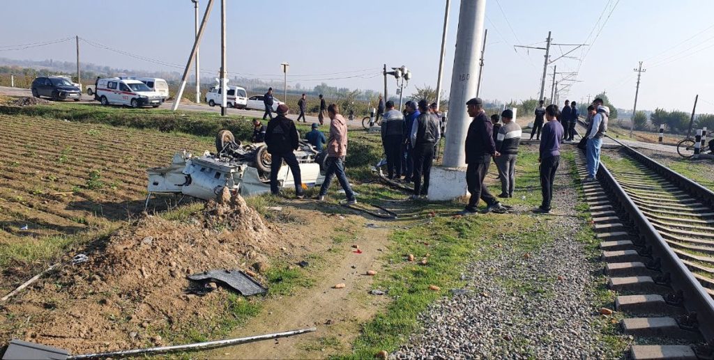 В Наманганской области поезд протаранил автомобиль Damas, сообщает пресс-служба УБДД.