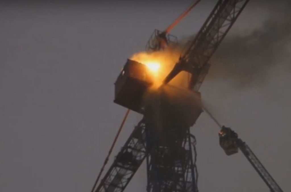Пожарные добрались до огня за 3 минуты и полностью потушили его в 02:55. Предполагается, что причиной возгорания стало короткое замыкание электропроводки в кабине крановщика.