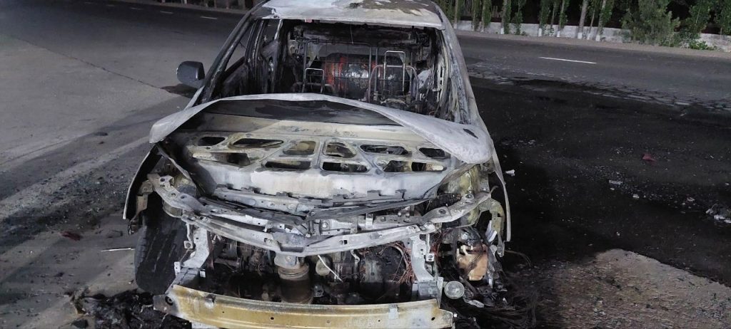 Инцидент произошел на уличе Чуст-Юли в Шахидоне почти в полночь. В результате пожара полностью выгорел автомобиль Cobalt. В салоне также сгорели документы на автомобиль и удостоверение личности водителя.