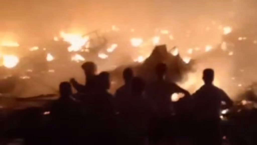 На видеозаписях очевидцев пожара видно, как местные торговцы пытаются своими силами потушить пламя и спасти часть товаров.