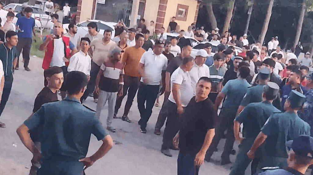 Согласно информации, инцидент произошел в махалле «Бустон» в Алтынсайском районе. Несколько человек сорвали состязание, устроили конфликт и начали кидать в правоохранителей камни.