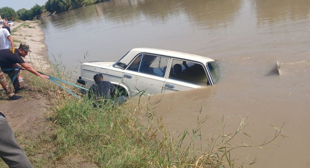 Инцидент произошел в 09:48, автомобиль «ВАЗ-2106» упал в водоканала «ЗАНГ», протекающего по территории махалли «Гулистон» Жаркургана. На место прибыли спасатели и вытащили автомобиль с помощью спецтехники.