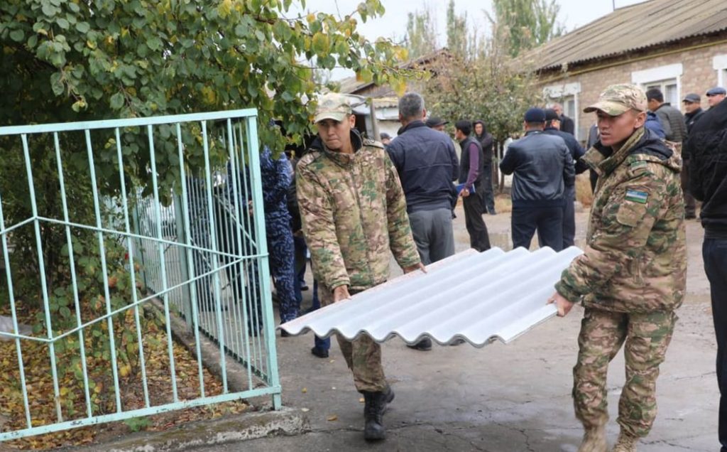 В Сырдарье военные оказывают помощь пострадавшим домам