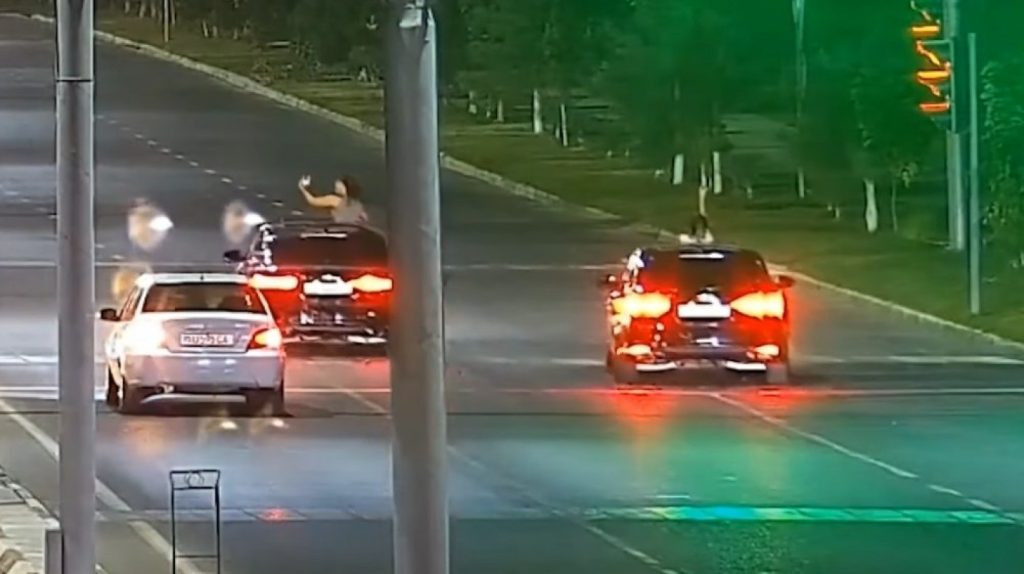 Ранее сообщалось, что в Ташкенте девушка на ходу высунулась из люка автомобиля с бутылкой в руке. С водителем и пассажиром провели профилактическую беседу.