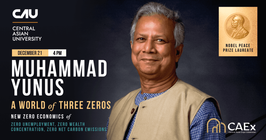 Central Asian University готовится провести знаковое событие – эксклюзивную гостевую лекцию профессора Мухаммада Юнуса, лауреата Нобелевской премии мира, основателя Грамин Банка и вдохновителя мировых изменений. Это мероприятие, являющееся частью серии закрытых гостевых лекций, запланировано на 21 декабря, начало в 16:00 в CAEx Uzbekistan в Ташкенте.