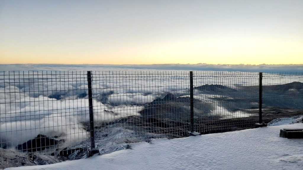 28 октября с раннего утра, жители региона могли стать свидетелями необычного явления — верхушки гор покрыл туман, так называемый туман склонов. Такая разновидность тумана снизу выглядит, как слоистое облако, а если подняться выше и оказаться внутри него, становится похожим на туман.