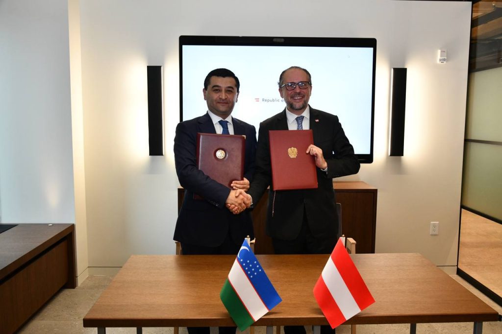 Министра иностранных дел Узбекистана Бахтиер Саидов и федеральный министр европейских и международных дел Австрии Александр Шалленберг подписали программу соглашения, которая охватила приоритетные направления сотрудничества во всех областях.