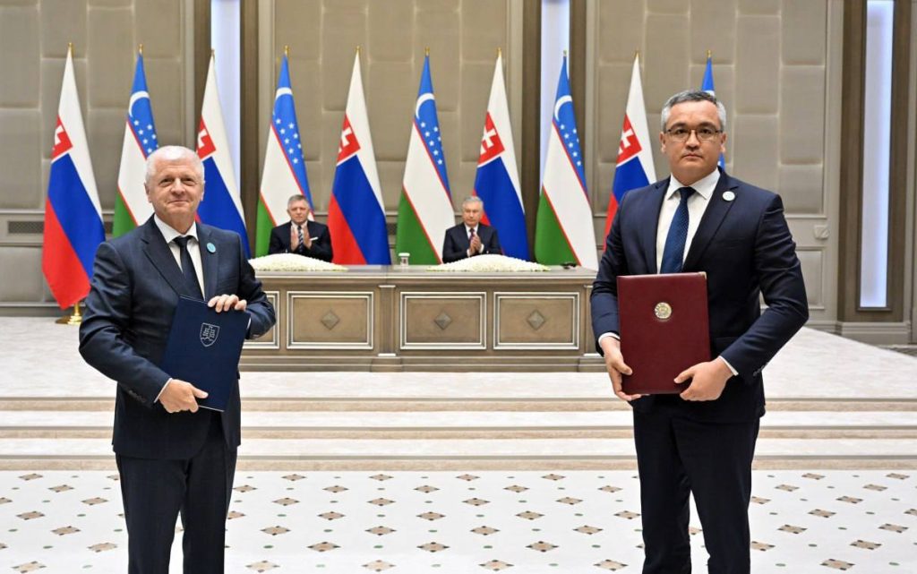 По итогам переговоров Шавкат Мирзиёев и премьер-министр Словакии Роберт Фицо подписали Совместную декларацию об установлении отношений стратегического партнерства, сообщает пресс-служба президента.