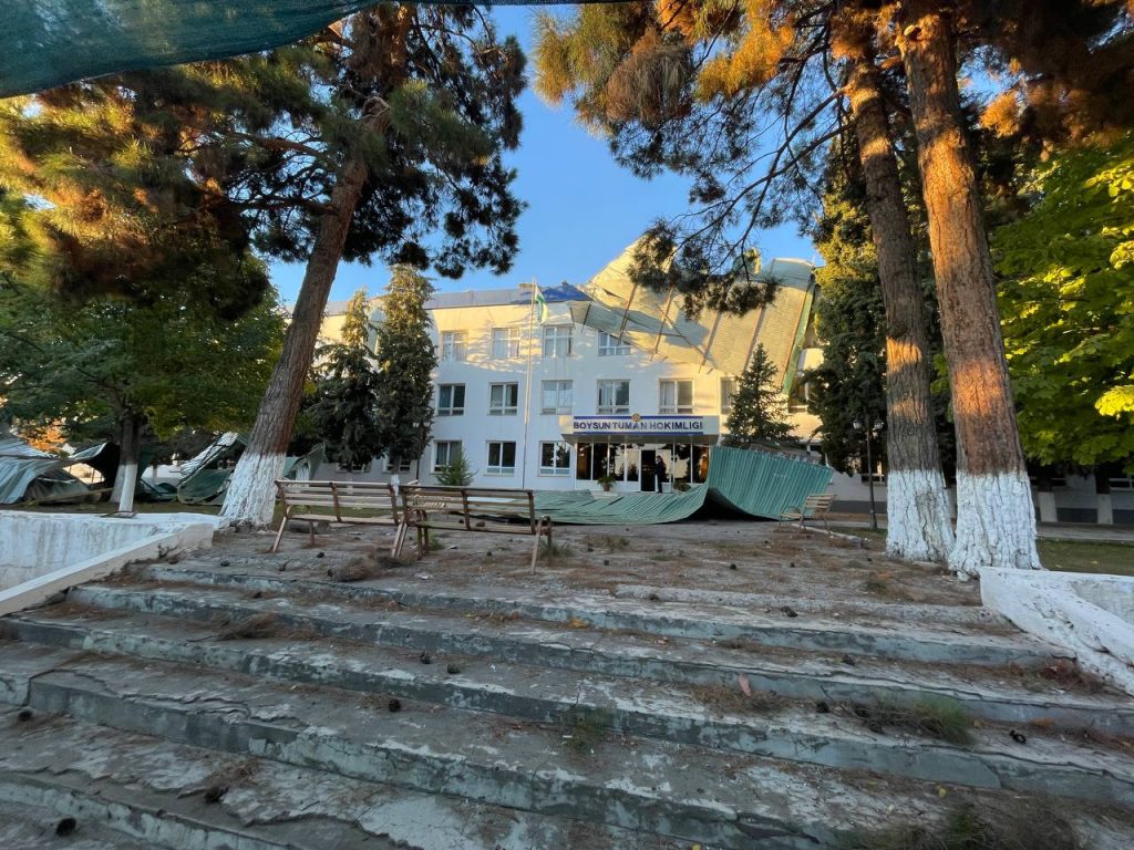 Согласно информации, у местного хокимията также снесло часть крыши. Пострадавших в инциденте нет.