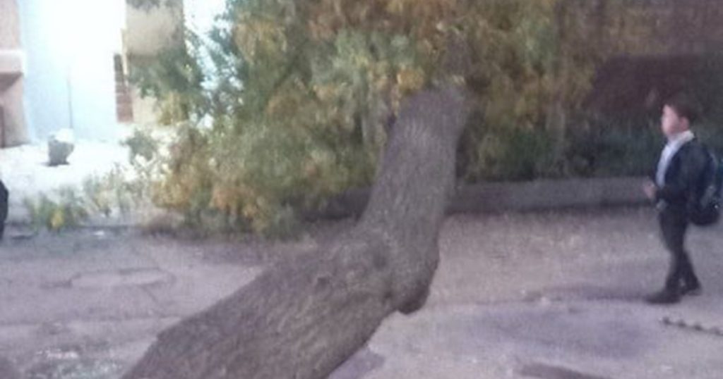 В Ташкенте рухнуло дерево в жилом дворе — фото